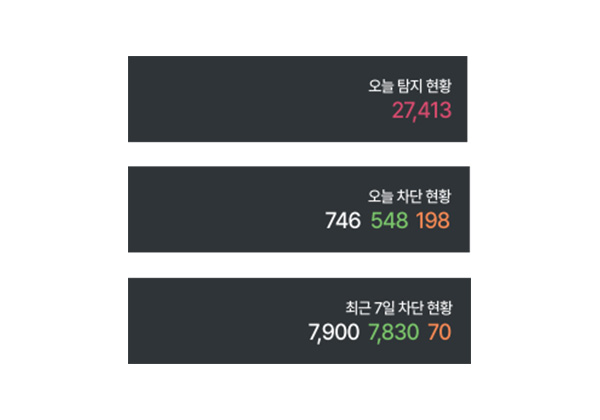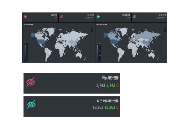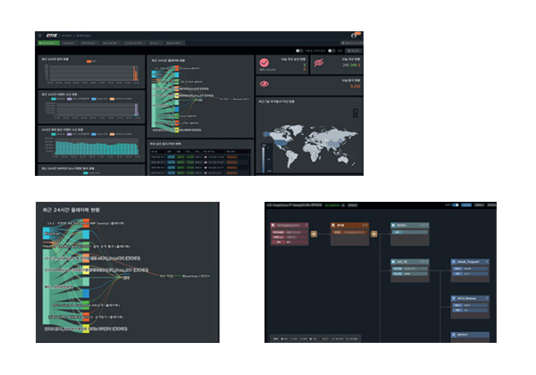 내·외부 위협 탐지 대응 자동화를 위해 SIEM, SOAR, TIP, AI 기능을 모두 활용하여 시스템을 구축하였으며 외부의 위협에 대해서는 방화벽과 IPS, 내부 호스트 보안을 위해 EDR과 연동 연계 구성을 하여 월 평균 3만 여건의 외부 위협을 자동 차단하고 있습니다.